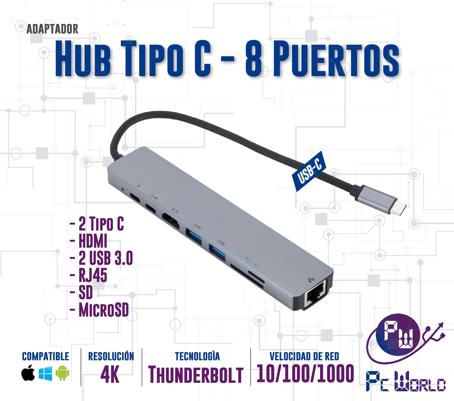 Hub Usb C Adaptador Multifuncional 8 En 1
